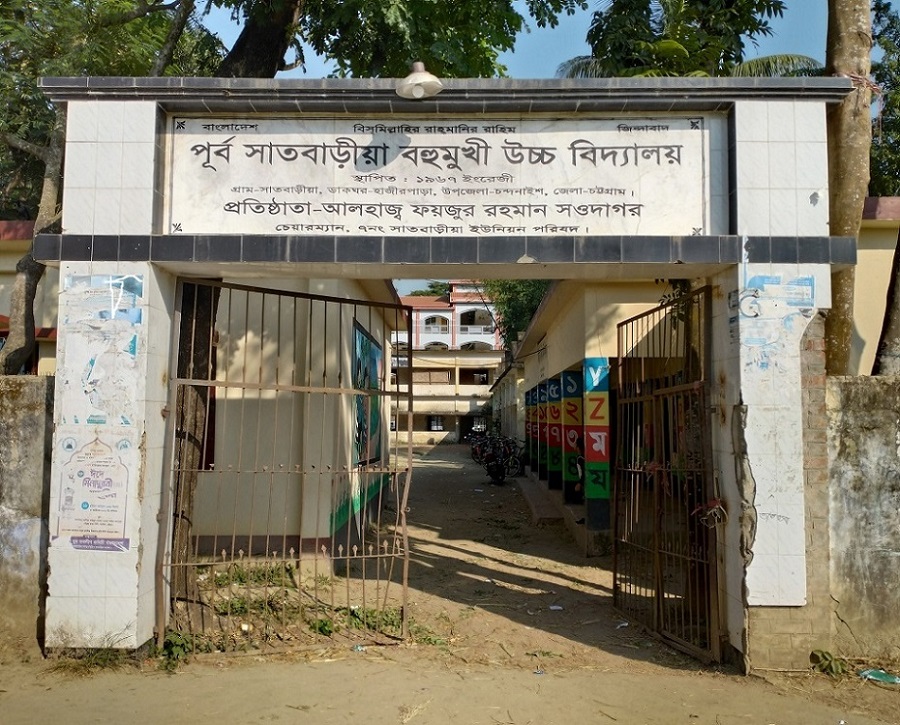 WELCOME TO PURBA SATBARIA HIGH SCHOOL ইতিহাস ”প্রবেশ কর জ্ঞানের সন্ধানে, ছড়িয়ে পড় মানব কল্যাণে” উক্ত ¯েøাগানের লক্ষ্যে পূর্ব সাতবাড়ীয়া বহুমুখী উচ্চ বিদ্যালয়টি চট্টগ্রাম জেলাধীন চন্দনাইশ উপজেলার অর্ন্তগত ৭ নং সাতবাড়ীয়া ইউনিয়নের ১৯৬৭ সালে প্রতিষ্ঠিত হয়। তৎকালীন সাতবাড়ীয়া ইউনিয়ন পরিষদের সুযোগ্য চেয়ারম্যান জনাব আলহাজ্ব ফয়জুর রহমান সওদাগরের আন্তরিক প্রচেষ্টা ও শিক্ষানুরাগী ব্যক্তি বর্গের সহযোগীতায় বিদ্যালয়টি প্রতিষ্ঠিত হয়। বিদ্যালয় পরিচালনায় জনাব মোহাম্মদ আতাউর রহমান টিপু সভাপতি ও ১২ সদস্য বিশিষ্ট একটি পরিচালনা পর্ষদ রয়েছে। বিদ্যালয়ে বর্তমান প্রধান শিক্ষক জনাব ইন্দ্রজিৎ চক্রবর্ত্তী, ছাড়াও ২০ জন শিক্ষক, কর্মচারী এ বিদ্যালয়ে কর্মরত আছেন। বিদ্যালয়ে ১টি ৪ তলা, ২টি ২তলা ও ১টি ১তলা বিশিষ্ট ভবন সহ ৪টি ভবন ও ১ টি খেলার মাঠ এবং ১ টি ফুলের বাগান বিদ্যমান। বিদ্যালয়ে সর্বকালের শ্রেষ্ঠ বাঙালী জাতির পিতা বঙ্গবন্ধু শেখ মুজিবুর রহমানের হাজারো স্মৃতি সমৃদ্ধ বঙ্গবন্ধু কর্ণার, শেখ রাসেল ডিজিটাল ল্যাব, উন্নতমানের স্মার্ট টিভি সমৃদ্ধ মাল্টিমিডিয়া ক্লাসরুম ও অসংখ্য বৈজ্ঞানিক যন্ত্রপাতি ও বিভিন্ন রাসায়নিক দ্রব্য সমৃদ্ধ বিজ্ঞানাগার রয়েছে। অত্র বিদ্যালয়ে ৩০০০ বই সমৃদ্ধ ১ টি অত্যাধুনিক লাইব্রেরী রয়েছে। অত্র বিদ্যালয়ে শিক্ষার্থীদের স্বাস্থ্যকর ও রুচিসম্মত খাবার নিশ্চিত করণের লক্ষ্যে উন্নতমানের ক্যান্টিন চালু আছে। অত্র বিদ্যালয়ে যুগোপযোগী সহ-শিক্ষা চালু রয়েছে। বর্তমানে প্রায় ৭ শতাধীক শিক্ষার্থী অধ্যয়নরত রয়েছে। জাতীয় শিক্ষাক্রম ও পাঠ্যপুস্তক বোর্ড বাংলাদেশ ও মাধ্যমিক ও উচ্চমাধ্যমিক শিক্ষা বোর্ড, চট্টগ্রামের অধিনে বিজ্ঞান, মানবিক ও ব্যবসায় শিক্ষা বিভাগ অনুমদিত , পাঠদান প্রদ্ধতি বাংলা মাধ্যম